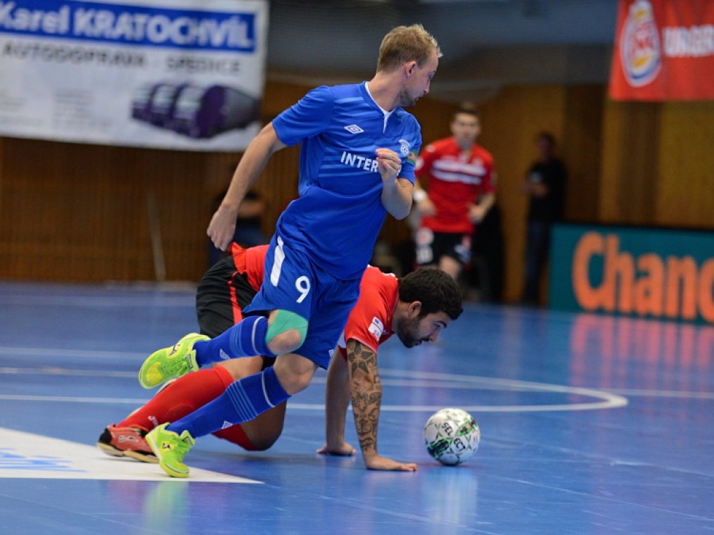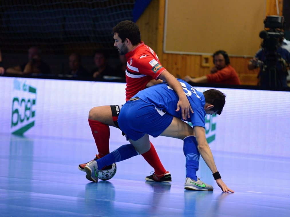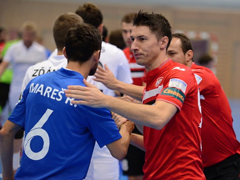Až v 16. minutě měl první vážnější příležitost Felipe, který však ze středu palubovky těsně minul. O minutu později pak brankář Daniel vyrazil pokus Záruby a odražený míč poslal zpět do šibenice Slováček - 0:1. V samotném závěru první půle byl blízko srovnání Marcelo, který se zjevil sám před Carlosem, ale svou střelu skrz chrudimského brankáře do sítě neprocpal.
