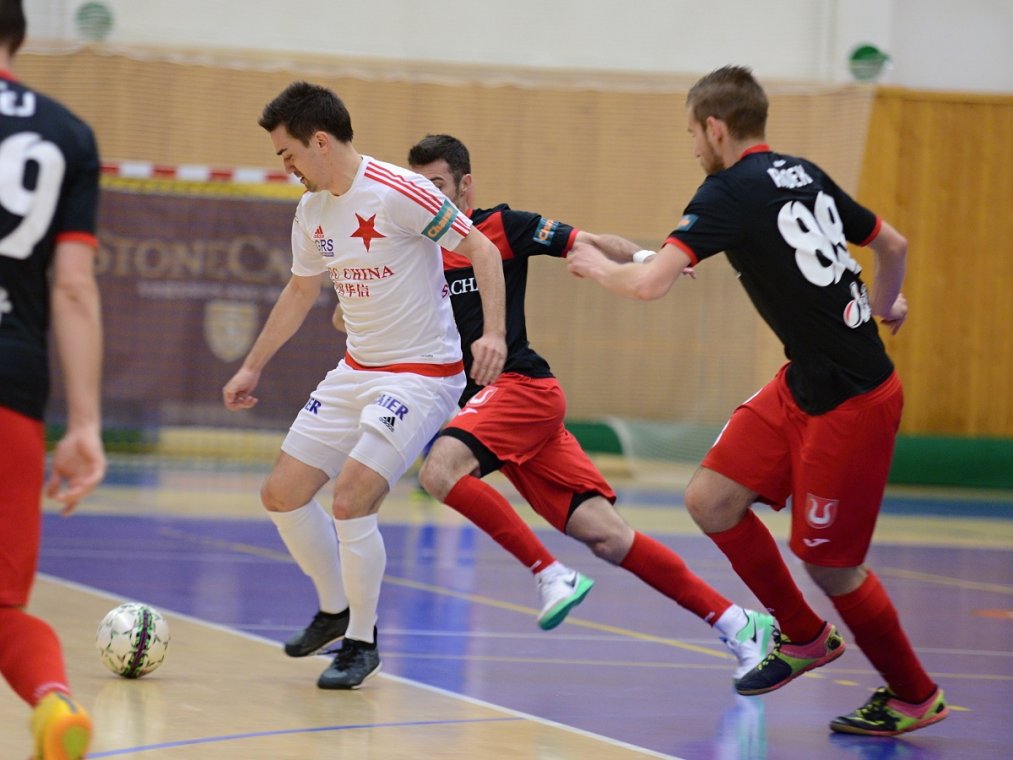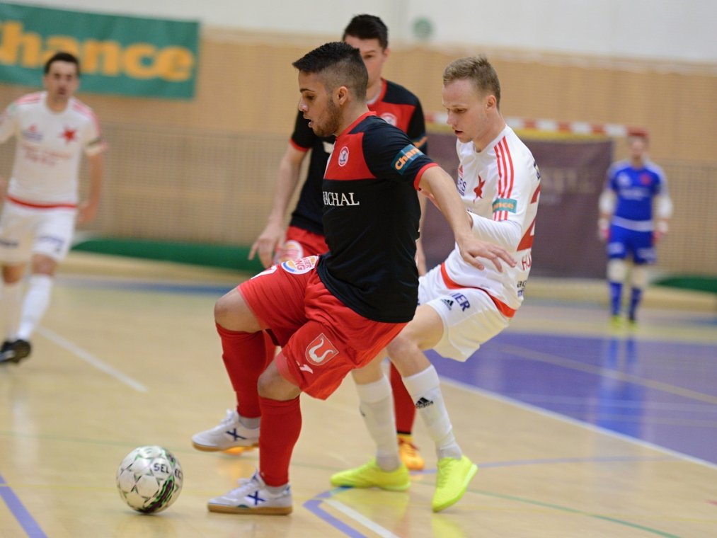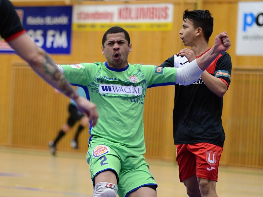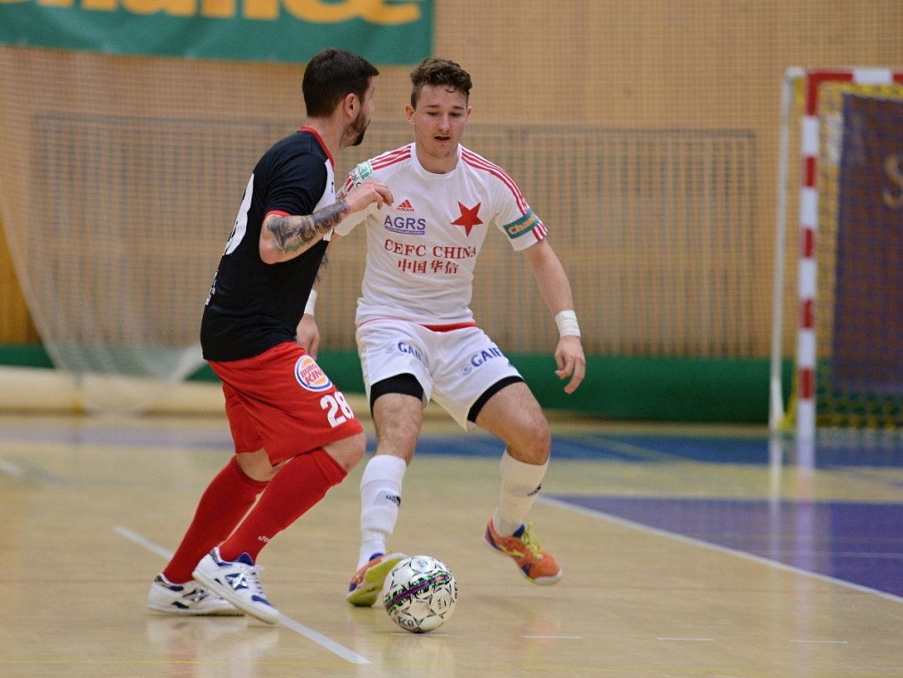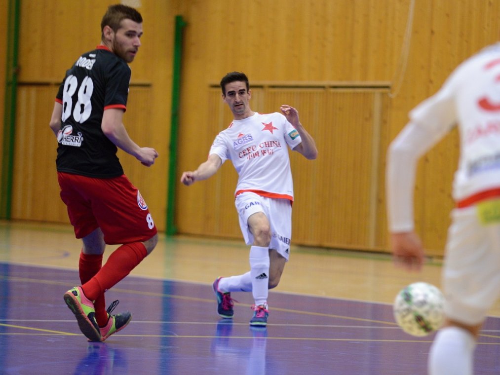 Zápas dospěl do prodloužení a hned na jeho začátku neproměnil domácí Rodek desítku za šestý faul Slavie. Podobně si vedl dvě minuty před koncem prodloužení i hostující Záruba, ten nastřelil z desítky tyč. Hrál se strhující zápas. Po dalším faulu Benaga dostal Saul červenou kartu, ale Oliva další nabídnutou desítku překopl. Jenže Pražané nakonec udeřili sedm vteřin před koncem. Záruba doslova paralyzoval Benago a přisoudil svému týmu první bod v sérii parádní ranou pod břevno během přesilové hry.