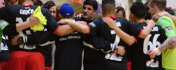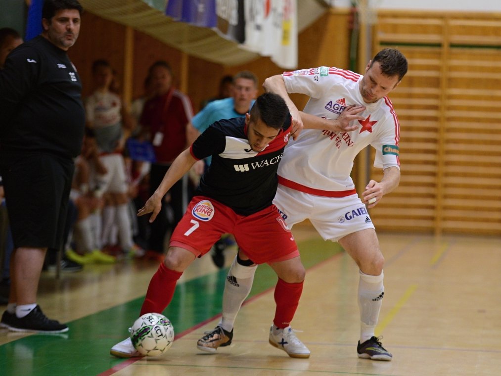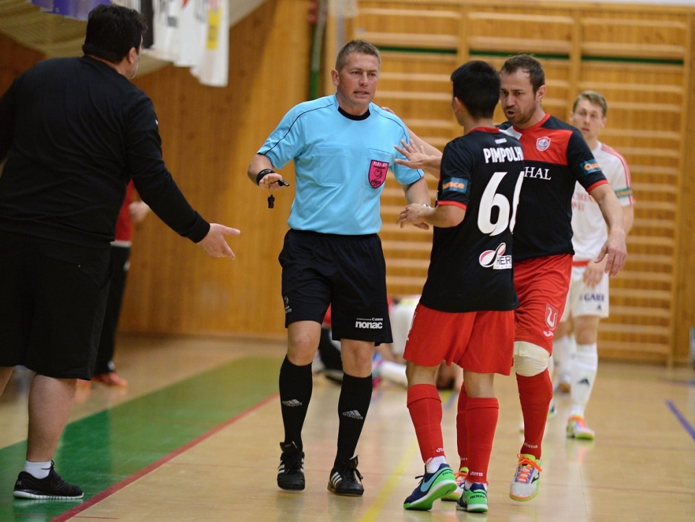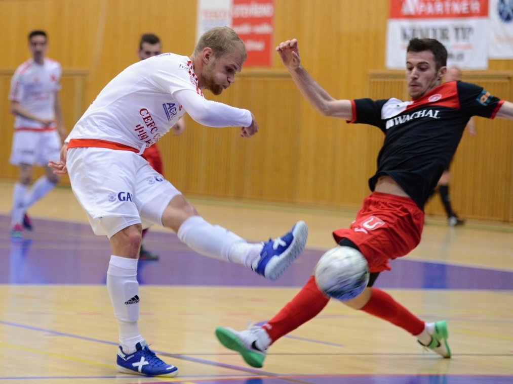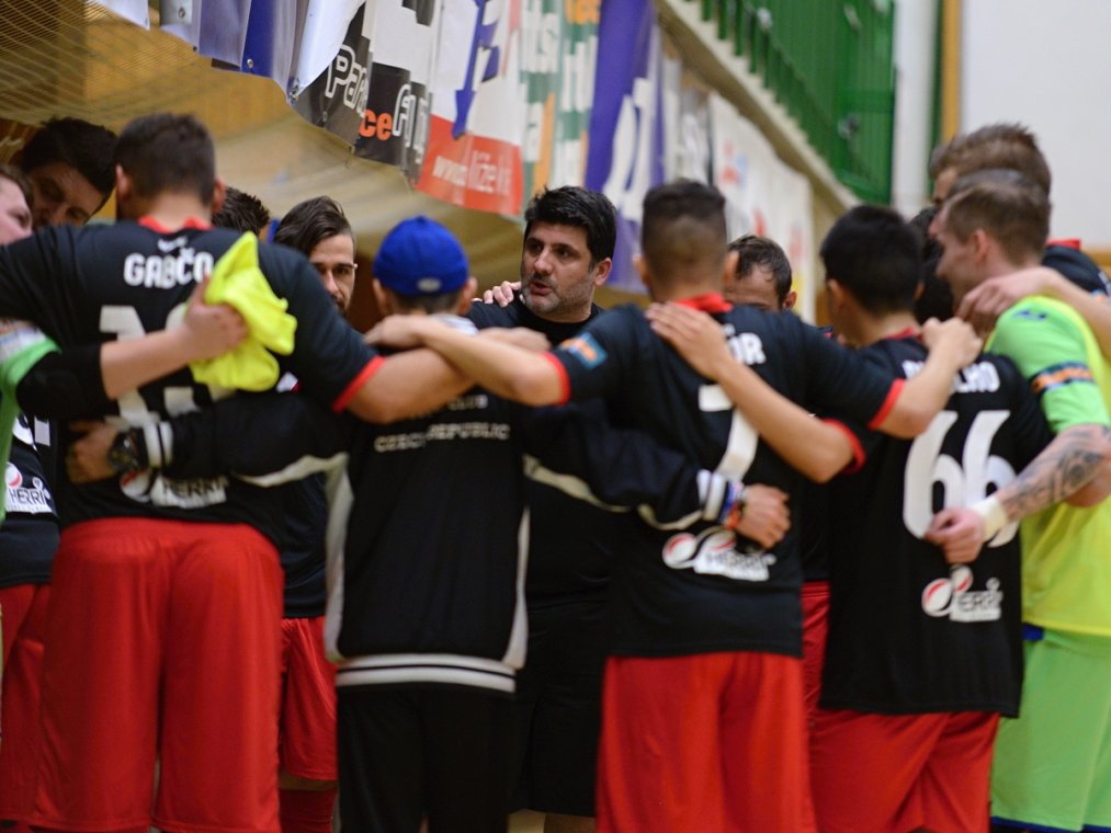 Zápas dospěl do prodloužení a hned na jeho začátku neproměnil domácí Rodek desítku za šestý faul Slavie. Podobně si vedl dvě minuty před koncem prodloužení i hostující Záruba, ten nastřelil z desítky tyč. Hrál se strhující zápas. Po dalším faulu Benaga dostal Saul červenou kartu, ale Oliva další nabídnutou desítku překopl. Jenže Pražané nakonec udeřili sedm vteřin před koncem. Záruba doslova paralyzoval Benago a přisoudil svému týmu první bod v sérii parádní ranou pod břevno během přesilové hry.
