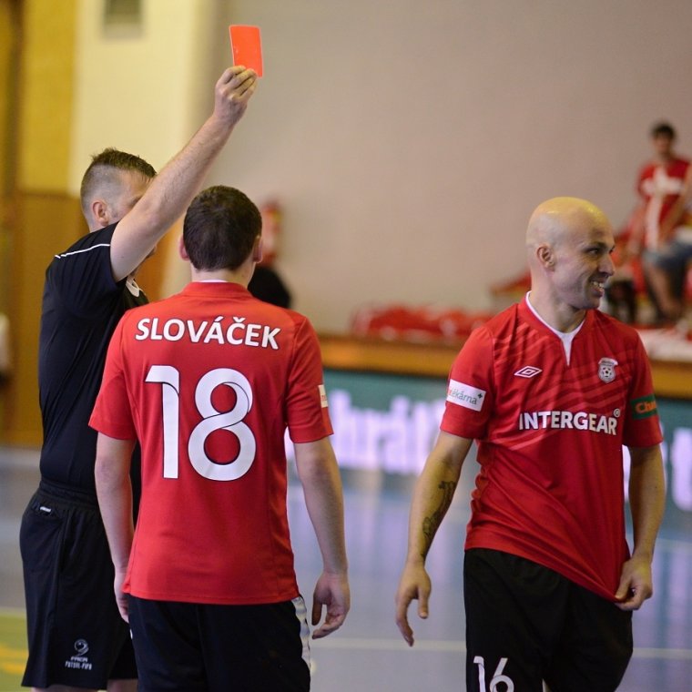 Chrudim nasměroval správným směrem už v 5. minutě střílející Slováček, jenže za stavu 1:0 byl domácí Mancha vyloučen za faul na unikajícího Brychtu. Sešívaní se v přesilovce ale vůbec nepředvedli, a navíc hned na jejím konci zvýšil na 2:0 Felipe. „Oslabení jsme dobře ubránili. Slavia pak byla skleslá a my jsme dali druhý gól,“ oddychl si chrudimský Matěj Slováček.