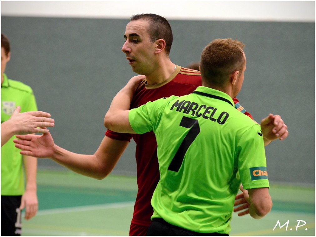 V 16. minutě chybovala Chrudim v rozehrávce, ale střelec první branky Marcio podruhé Žďánského nepřekonal. Následoval však rohový kop, který zahrál Sláma. Na jeho pas si naběhl Marcelo a rozvlnil síť chrudimské branky podruhé. Chrudim poté zkusila power play, ale sekundu před koncem prvního poločasu trefil odkrytou branku Alberto a stanovil tak poločasové skóre na 3:0.