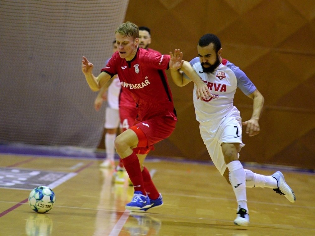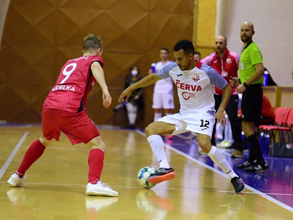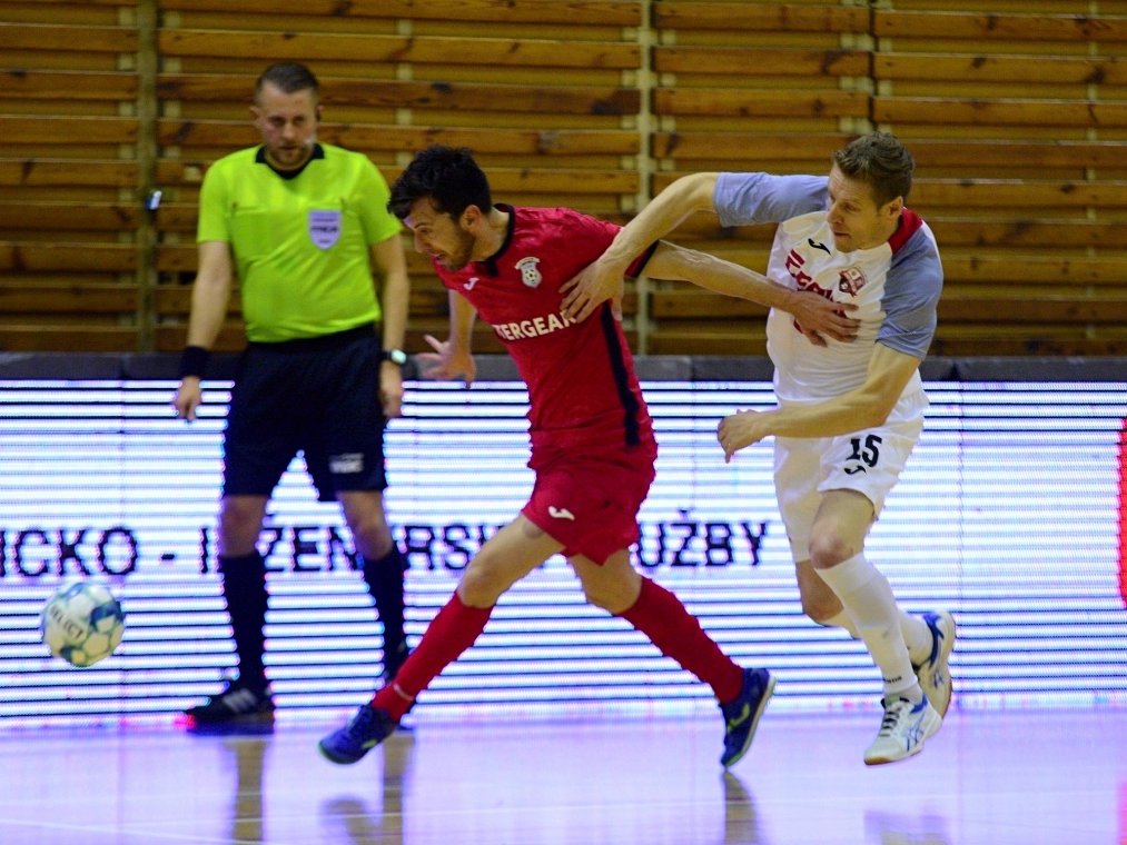Od začátku se mezi Chrudimí a Teplicemi vedla velká, byť defenzivní, bitva. V prvním poločase jsme v chrudimské sportovní hale viděli minimum velkých brankových příležitostí. O něco aktivnější byli domácí, jejich náznaky šancí však bez větších potíží pochytal brankář Michal Hůla, nebo, jako v případě Davida Drozda v sedmé minutě, mířilo zakončení nad břevno. Na opačné straně měl Rennan štěstí především při velké šanci Adriana, jehož střela taktéž mířila mimo.