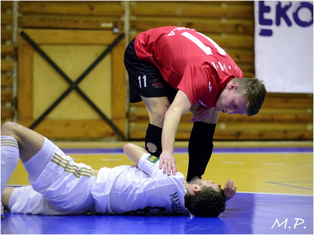 Vzápětí však Brněnští ztratili nervy. Udělali šestý faul a Sýkora viděl během dvou minut dvě žluté karty za protesty. Nařízenou desítku však Michal Mareš neproměnil. Přesilovka se Chrudimi vůbec nepovedla a mohla být ráda, že po brejku Jakuba Lidmila zazvonila pouze tyč Žďánského brány.