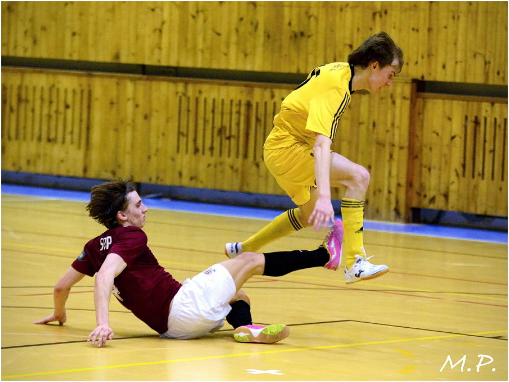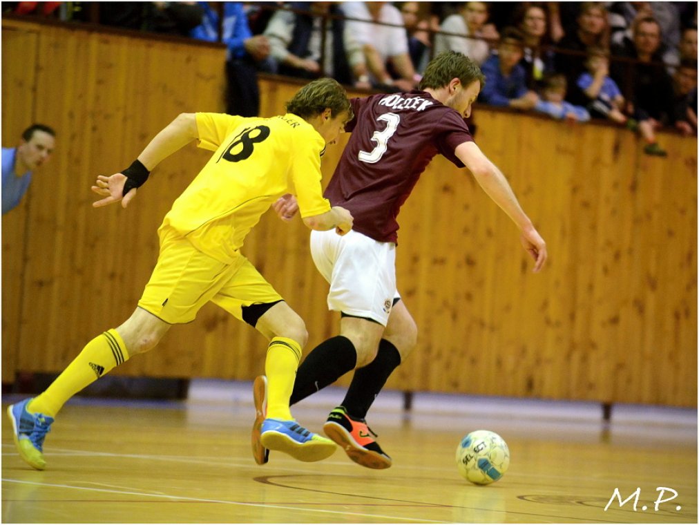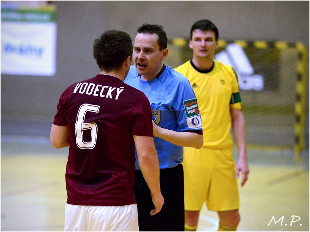 Futsalisté Sparty hráli důrazně, což se jim vyplatilo při právní brance. Vyraženou stelu Dlouhého „dojel“ ve skluzu Zapletal a hosté vedli od 6. minuty 1:0. Druhá branka hostí přišla v 19. minutě, kdy povedený brejk zakončil Doša.