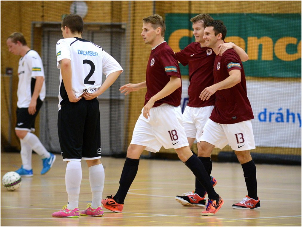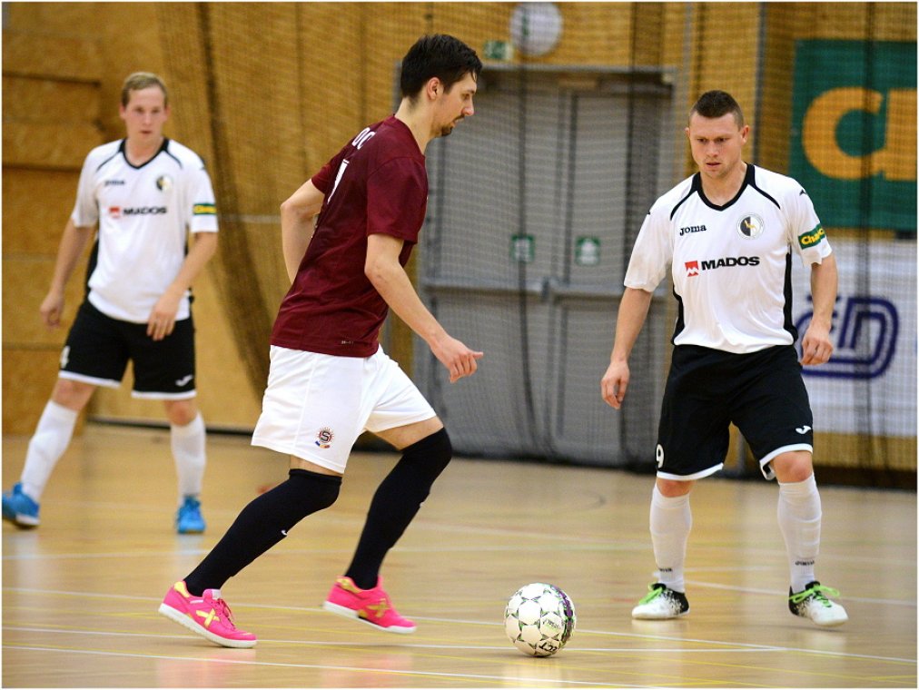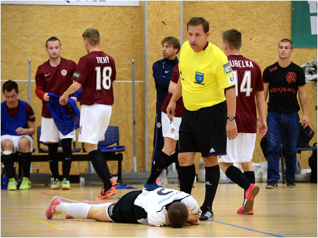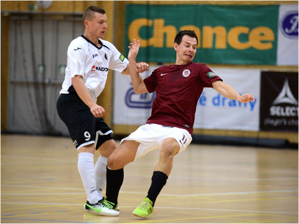 Futsalisté Sparty začali náporem a usadili se na polovině soupeře. Ten však hrozil z nebezpečných brejků. V 9. minutě utekl sparťanské obraně D. Drozd, ale svůj únik zakončil střelou do tyče Vozárovy brány. Na druhé straně zvonila tyč po pokusu sparťana Doši. Skóre se poprvé měnilo v 11. minutě. Sparta zahrála signál a Frič nahrál ve skluzu před prázdnou bránu Tichému – 1:0.