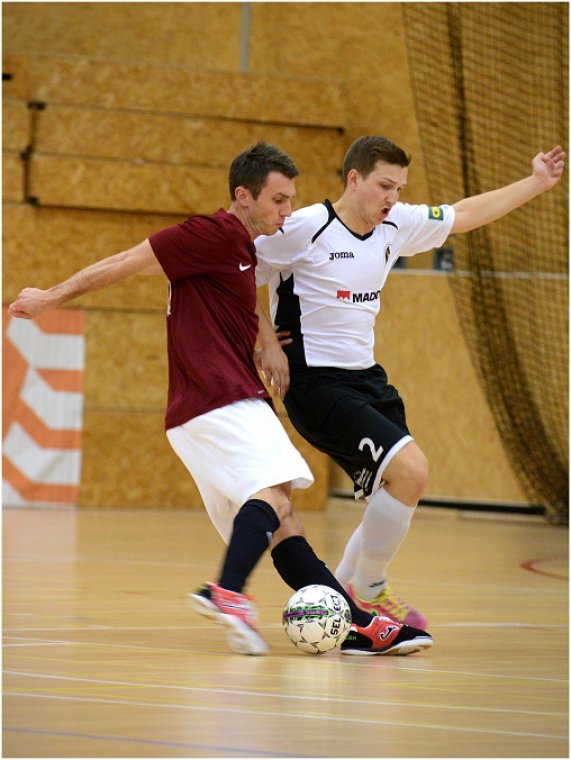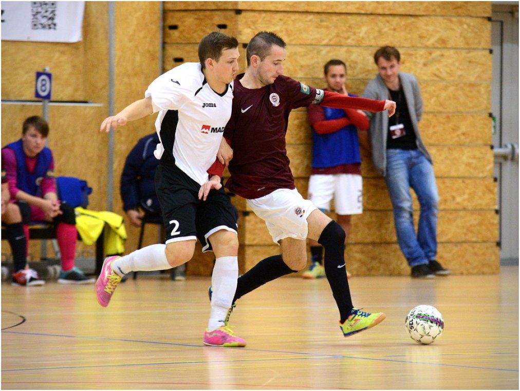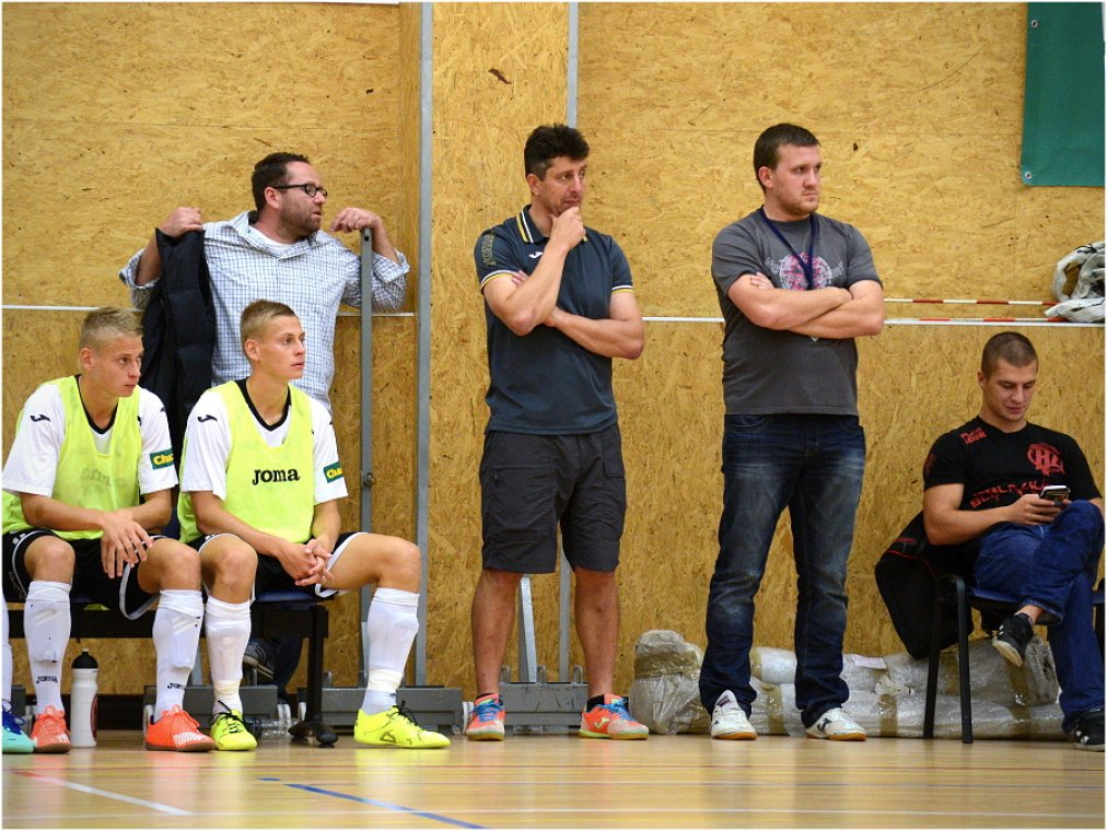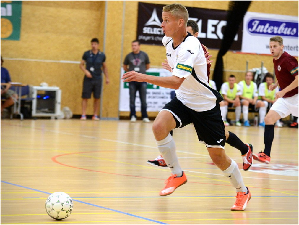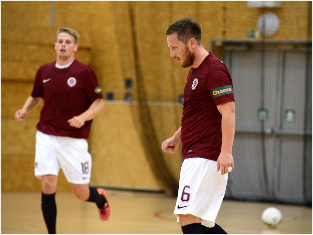 Futsalisté Sparty začali náporem a usadili se na polovině soupeře. Ten však hrozil z nebezpečných brejků. V 9. minutě utekl sparťanské obraně D. Drozd, ale svůj únik zakončil střelou do tyče Vozárovy brány. Na druhé straně zvonila tyč po pokusu sparťana Doši. Skóre se poprvé měnilo v 11. minutě. Sparta zahrála signál a Frič nahrál ve skluzu před prázdnou bránu Tichému – 1:0.