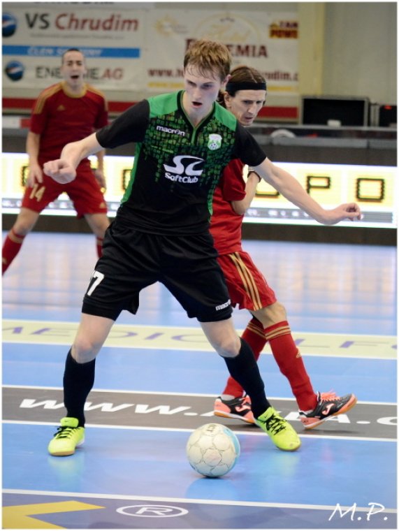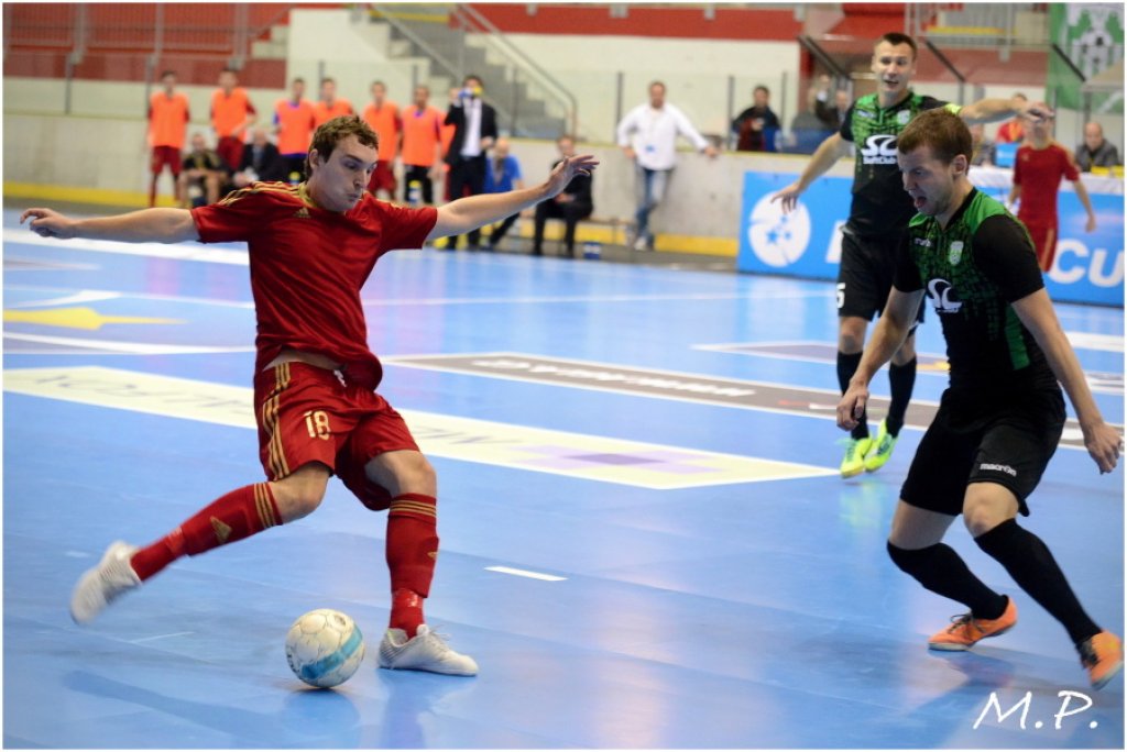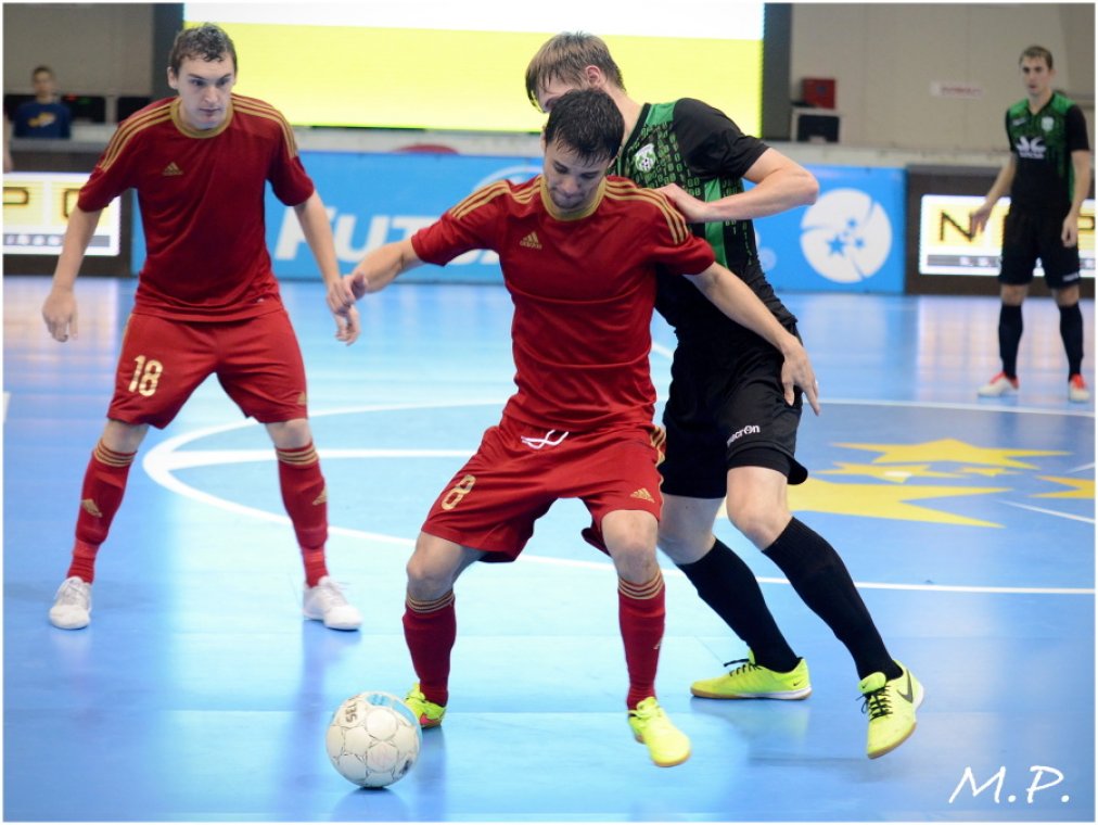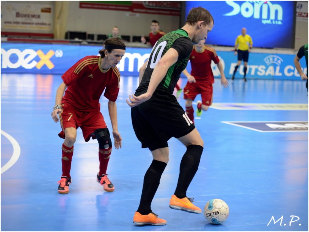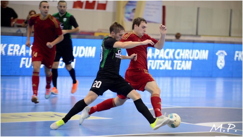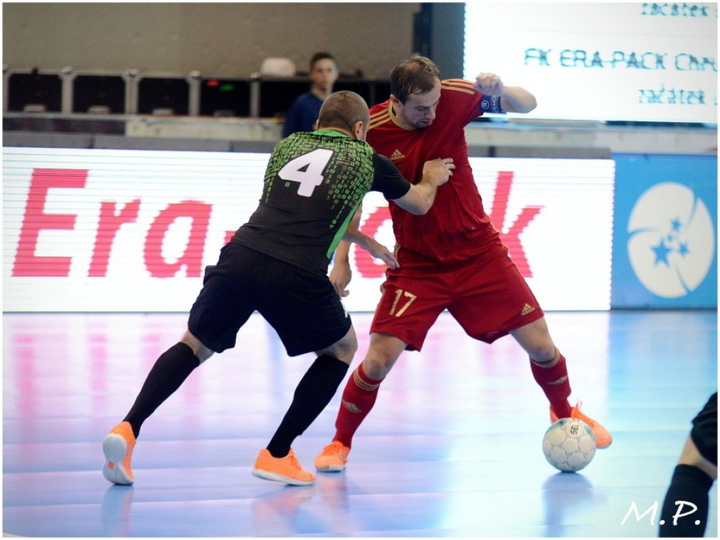 Futsalisté Chrudimi od začátku utkání drželi balon, ale z první šance dokázali udeřit Bělorusové. Gumenjukova střela se odrazila před bránu, kde míč poslal hlavou do chrudimské sítě Silčenko – 0:1. ERA-PACK se však brankou nenechal zaskočit a hned po rozehrávce vyrovnal: Felipe našel krásnou uličkou Alvarita, pro nějž nebyl problém srovnat na 1:1. V 9. minutě už Chrudim vedla. Slováček se uvolnil po pravé straně, obešel brankáře Poljakova a zasunul míč do brány. Skvělý moment – 2:1. Slováček měl poté ještě jednu šanci, ale v samostatném úniku pálil těsně vedle.