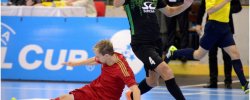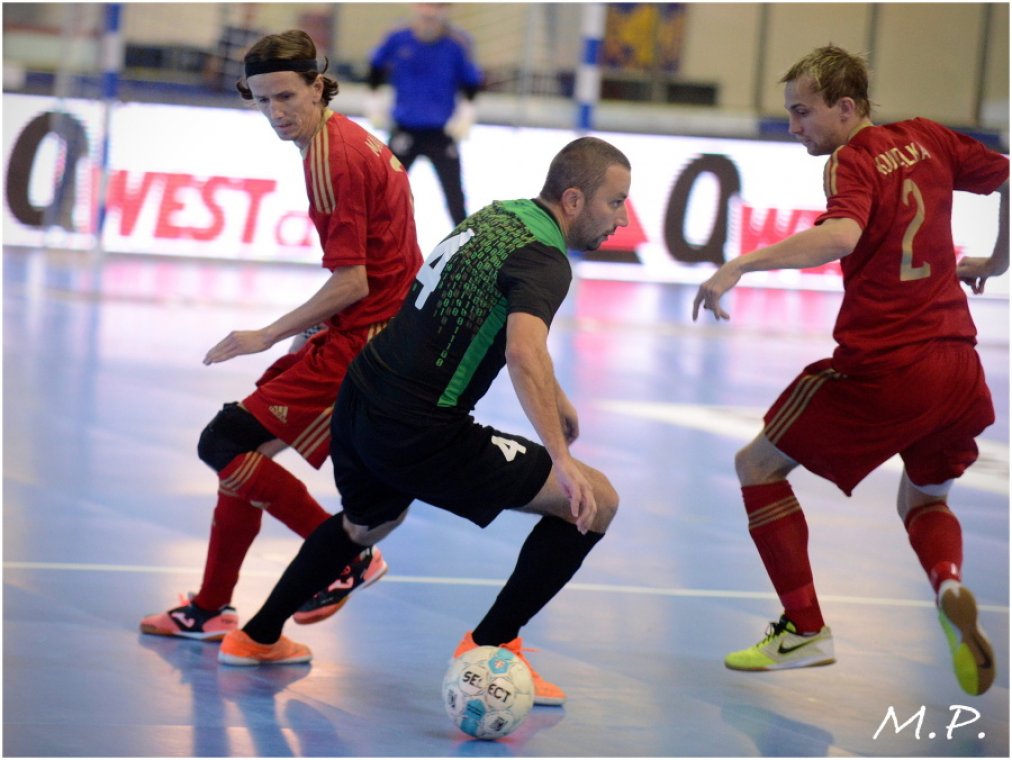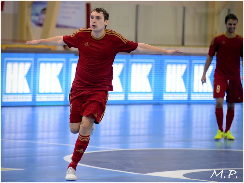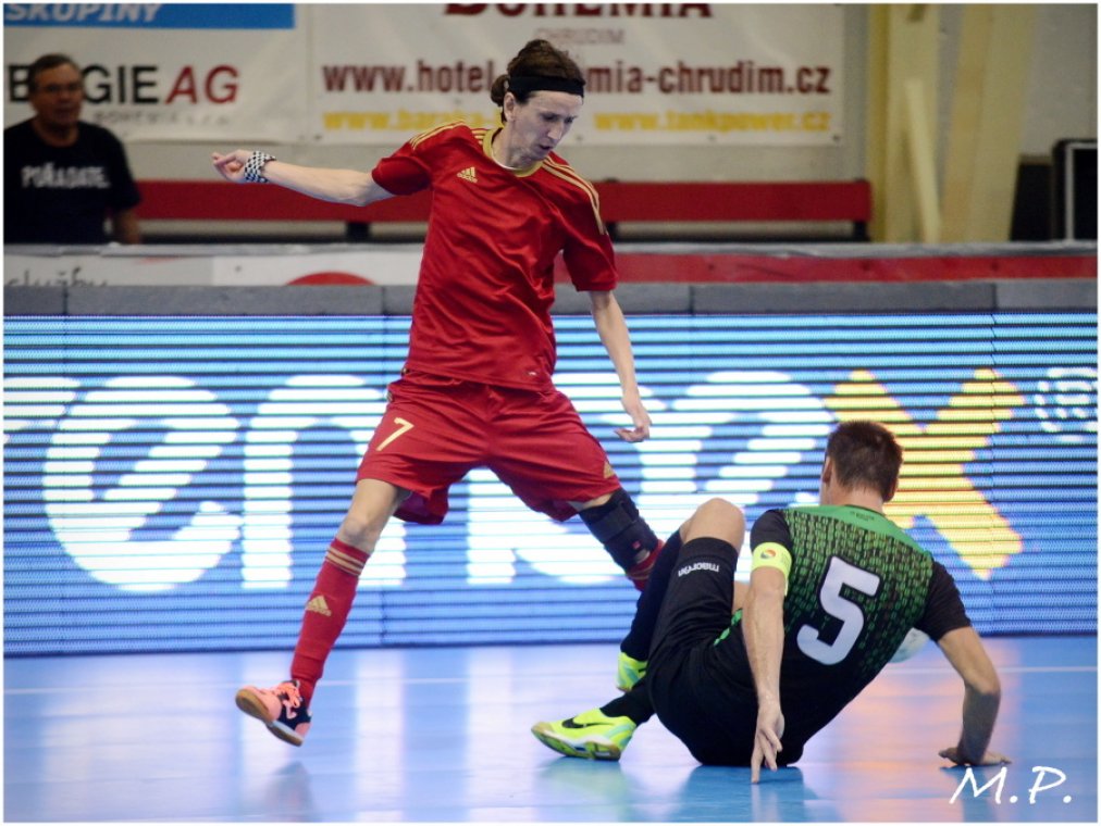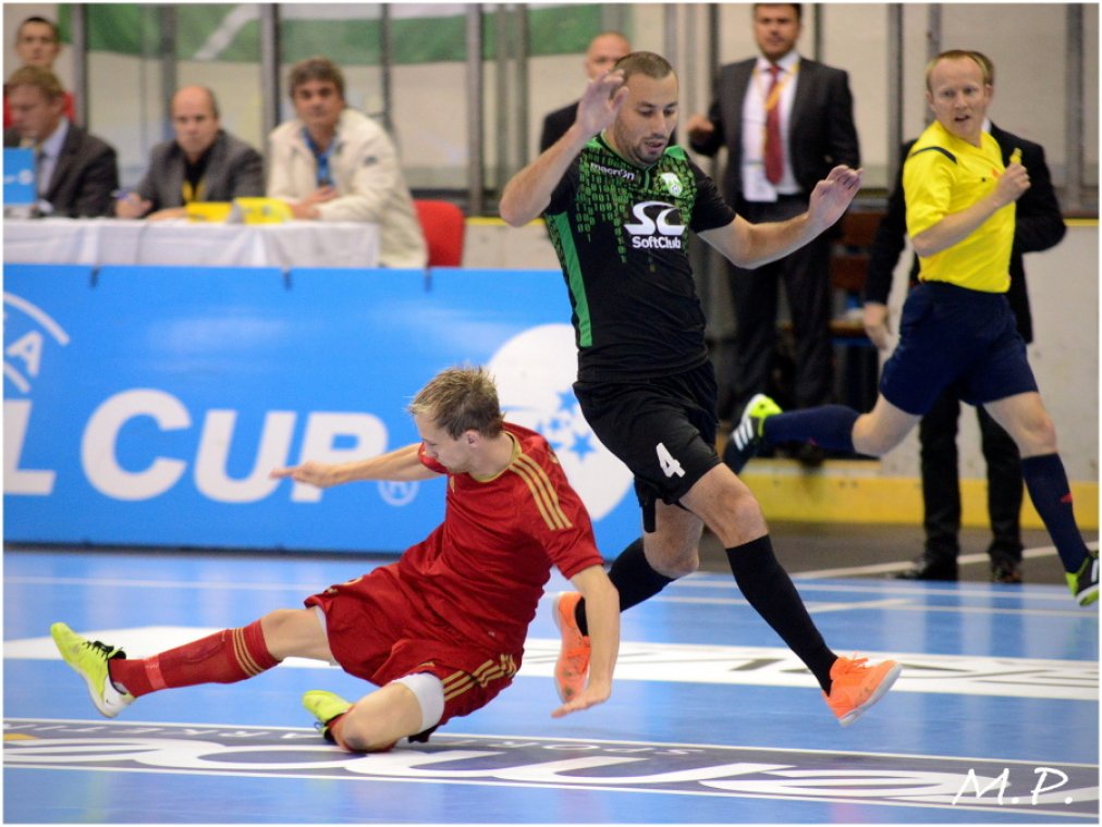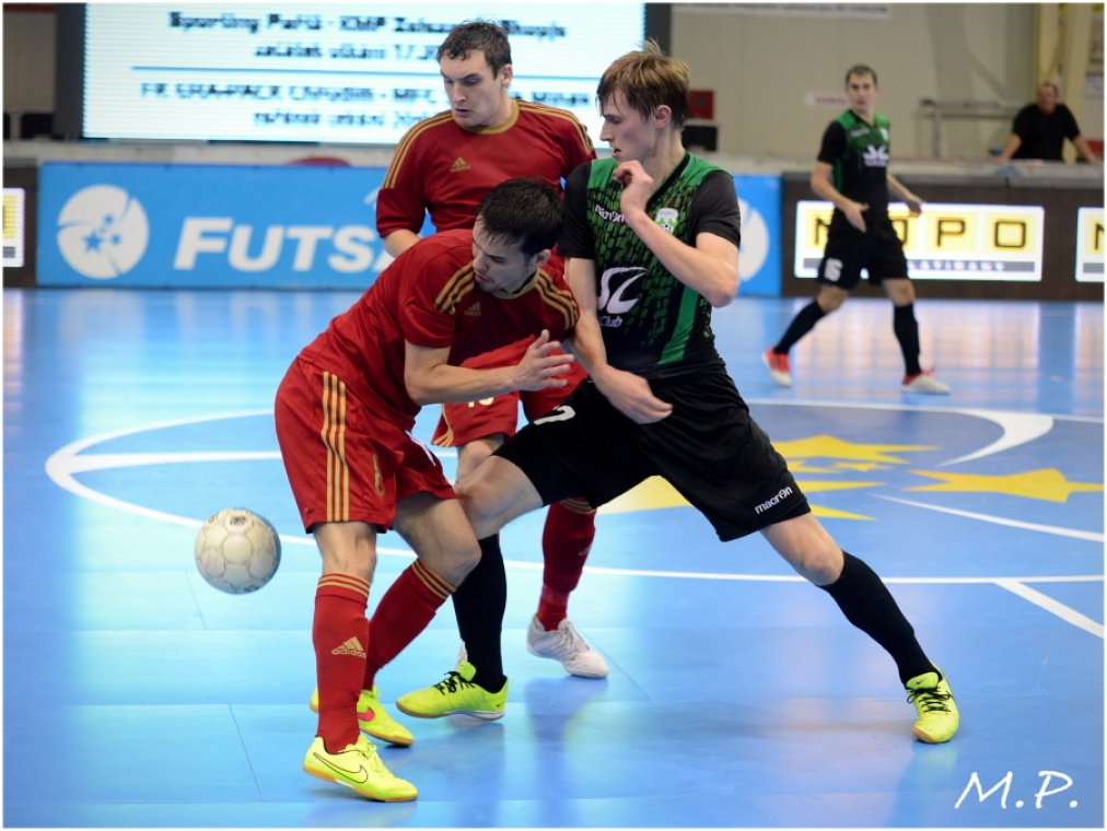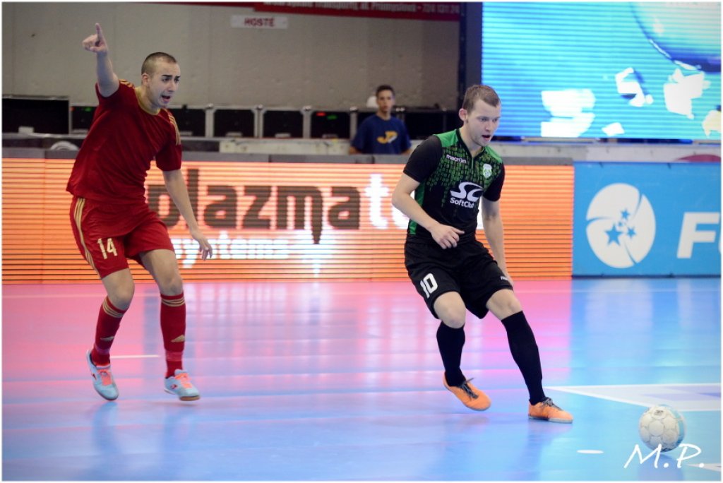 Futsalisté Chrudimi od začátku utkání drželi balon, ale z první šance dokázali udeřit Bělorusové. Gumenjukova střela se odrazila před bránu, kde míč poslal hlavou do chrudimské sítě Silčenko – 0:1. ERA-PACK se však brankou nenechal zaskočit a hned po rozehrávce vyrovnal: Felipe našel krásnou uličkou Alvarita, pro nějž nebyl problém srovnat na 1:1. V 9. minutě už Chrudim vedla. Slováček se uvolnil po pravé straně, obešel brankáře Poljakova a zasunul míč do brány. Skvělý moment – 2:1. Slováček měl poté ještě jednu šanci, ale v samostatném úniku pálil těsně vedle.