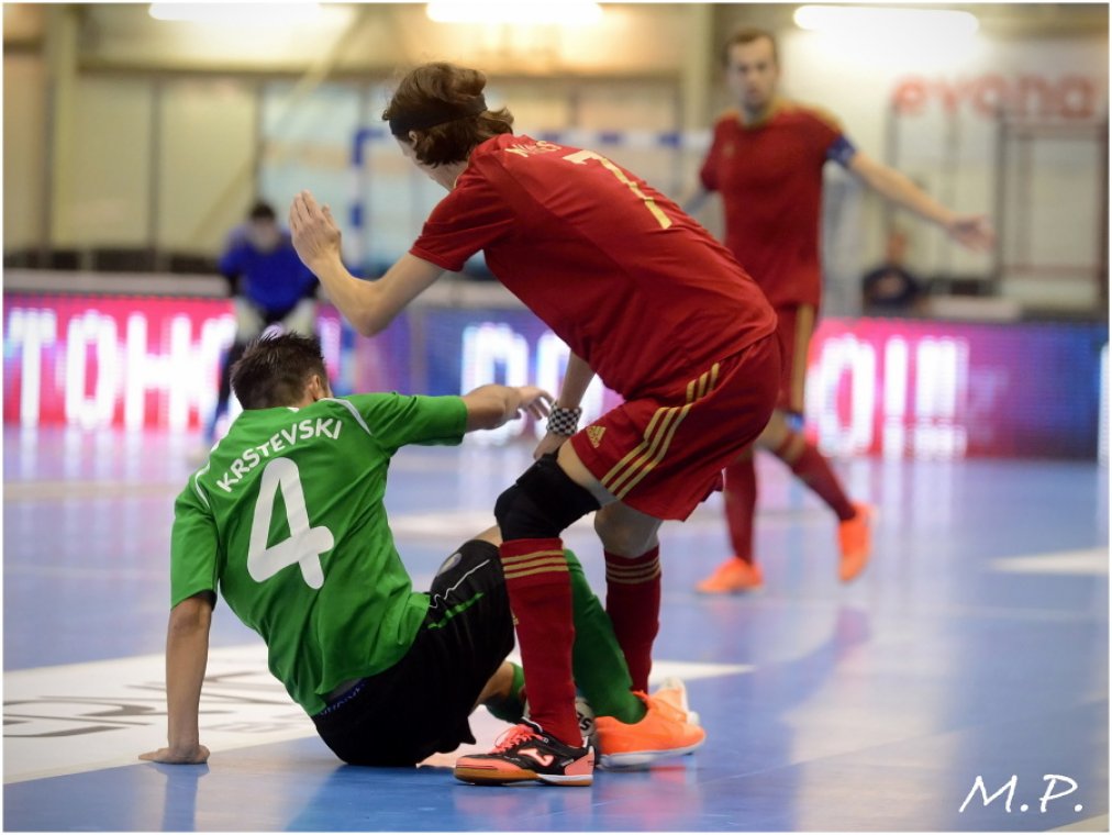 Chrudim měla dobrý vstup do utkání, když ve 2. minutě našel Slováček ve vyložené pozici před brankou Maxe, který ranou z první pod břevno rozjásal domácí fandy poprvé – 1:0. Jenže vedení ERA-PACKu trvalo jen pár vteřin. Prakticky téměř po rozehrávce se Makedonci dostali před brankáře Tona a Leovski rázem vyrovnal – 1:1. Po hektickém začátku se na další gól čekalo až do 8. minuty, kdy si domácí Alvarito postavil z makedonských obránců slalom a své sólo završil i kličkou brankáři – 2:1. Do šaten se však šlo za nerozhodného stavu 2:2, když ve 13. minutě dva hráči hostí obrali o míč Felipeho a Novakovič tvrdou přízemní ranou k tyči vyrovnal.