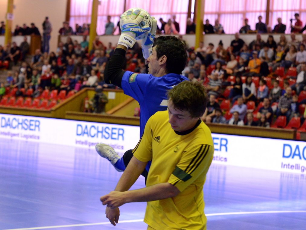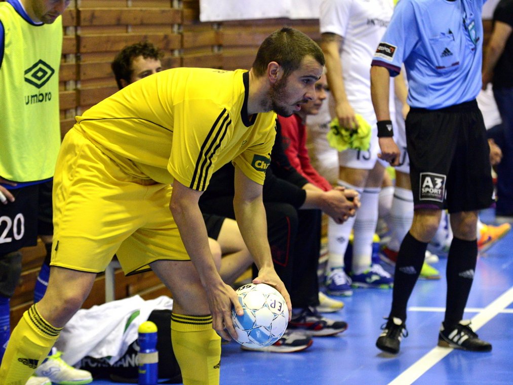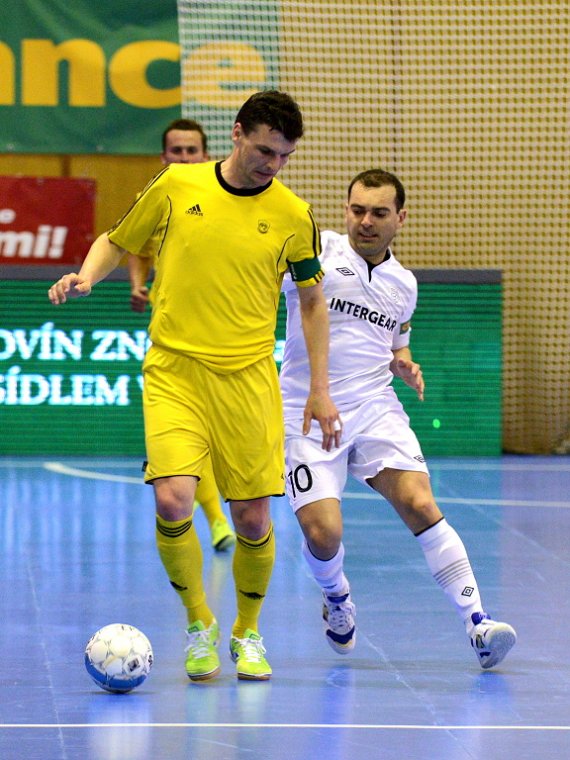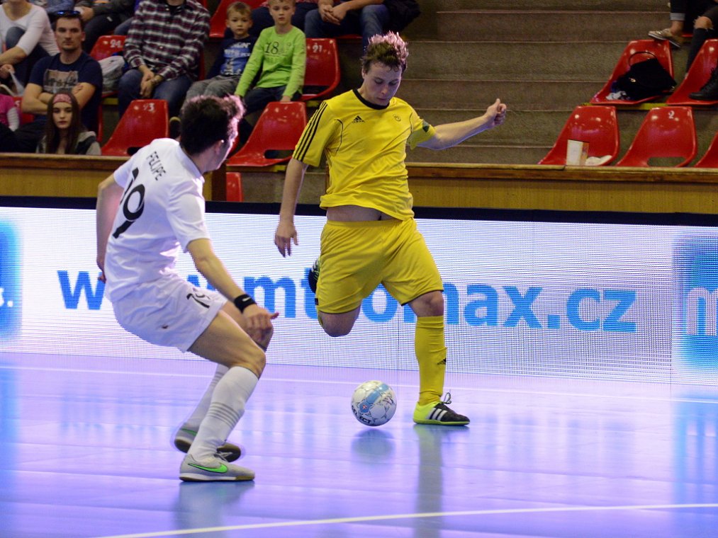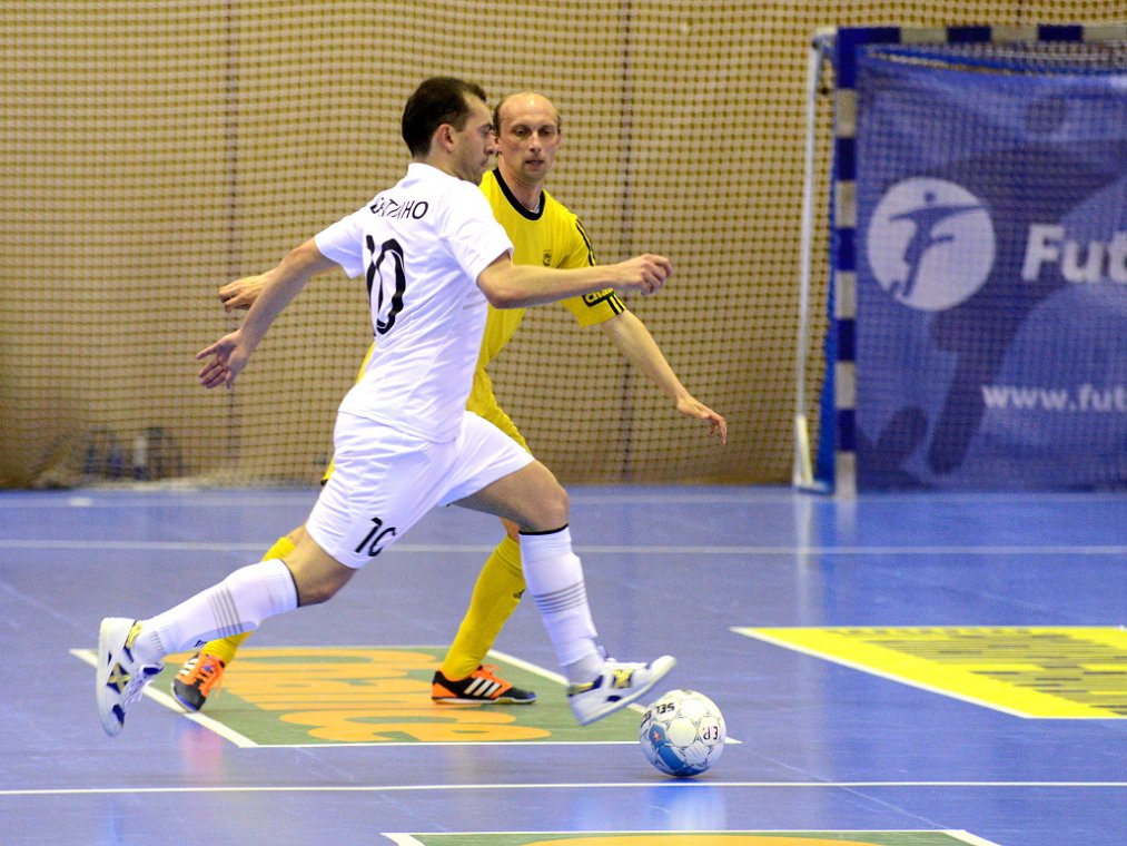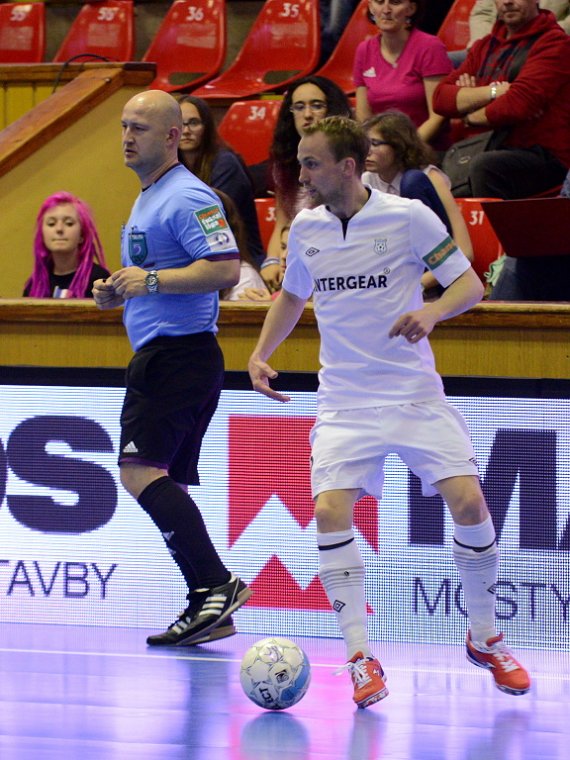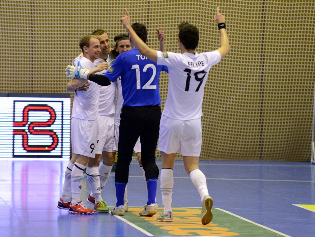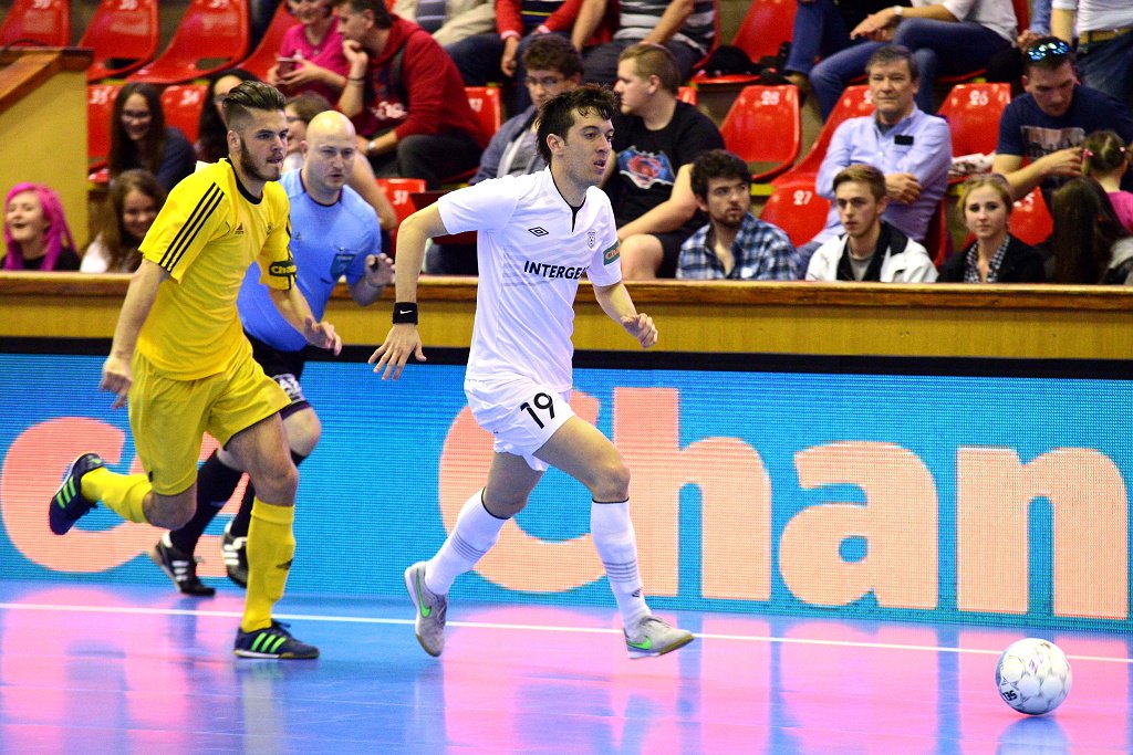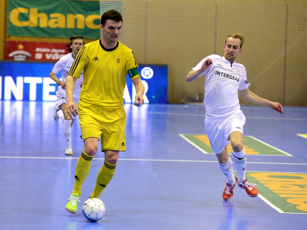 Od začátku se hrál vyrovnaný futsal. Nejzbach pozorně bránil a chodil do nebezpečných brejků. Hosté také těžili ze skvělých zákroků Libora Gerčáka. Šance se rodily na obou stranách, ale první gól vstřelil ve 13. minutě Koudelka, který si počíhal na zadní tyči. Nejzbach odpověděl v 15. minutě po rozehraném rohovém kopu na Vágnera a ten propálil vše před sebou – 1:1. Nadějný výsledek Nejzbach do přestávky neudržel, když v poslední minutě první půle napřáhl Záruba a jeho dělovka skončila za zády Gerčáka – 2:1.