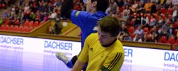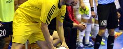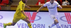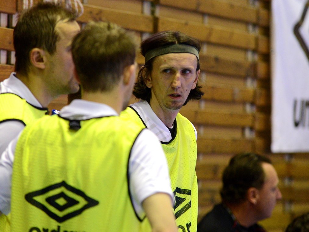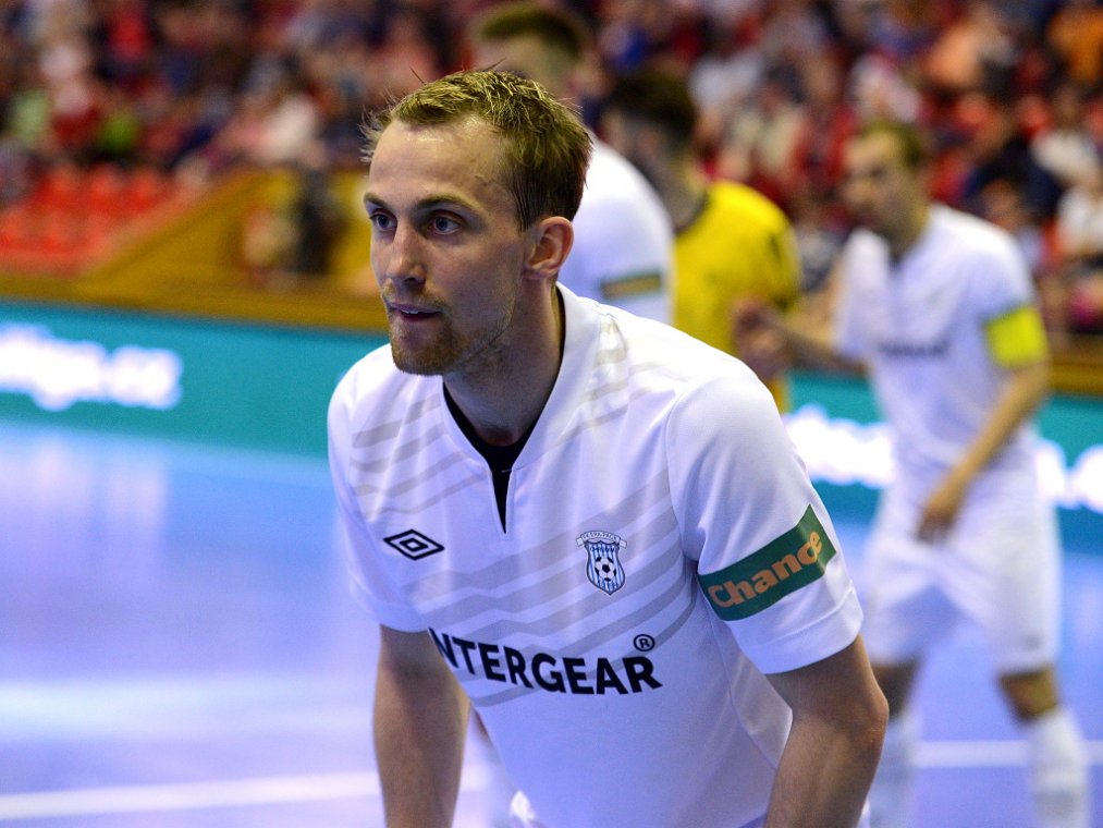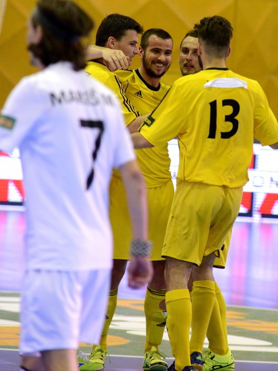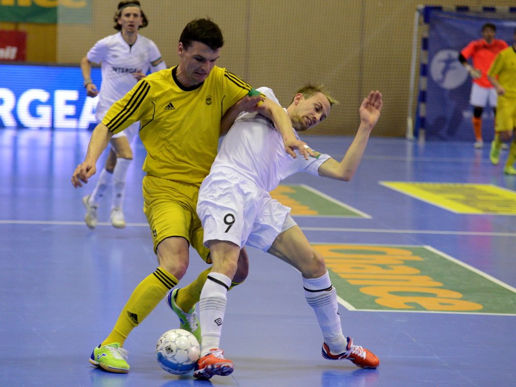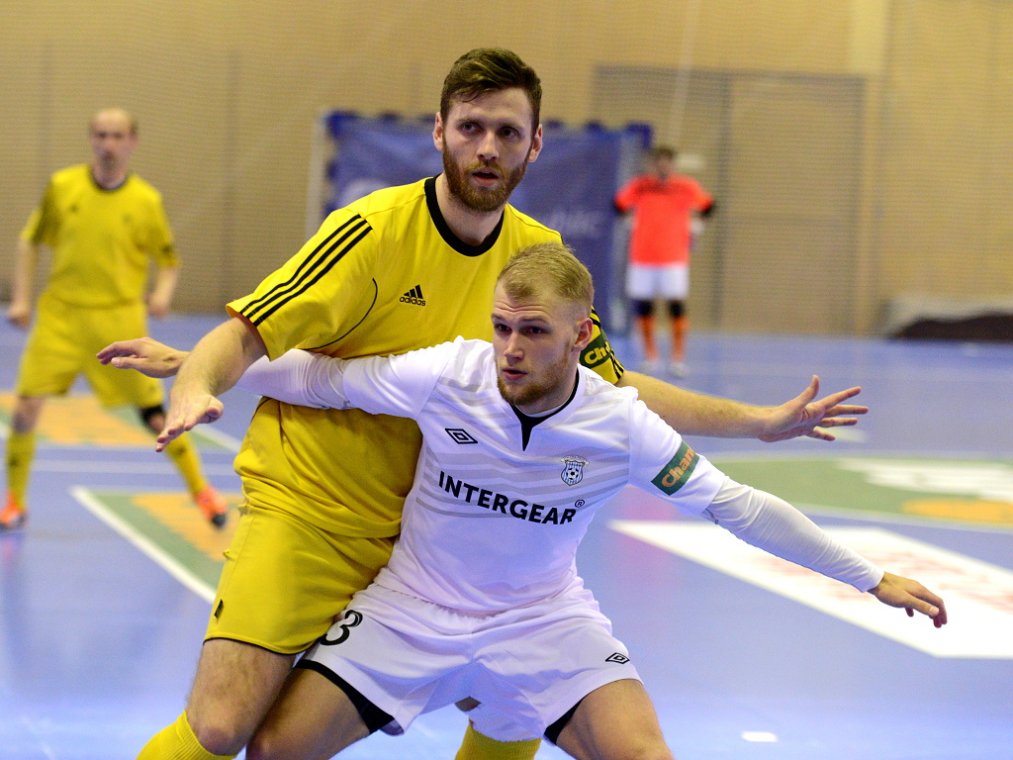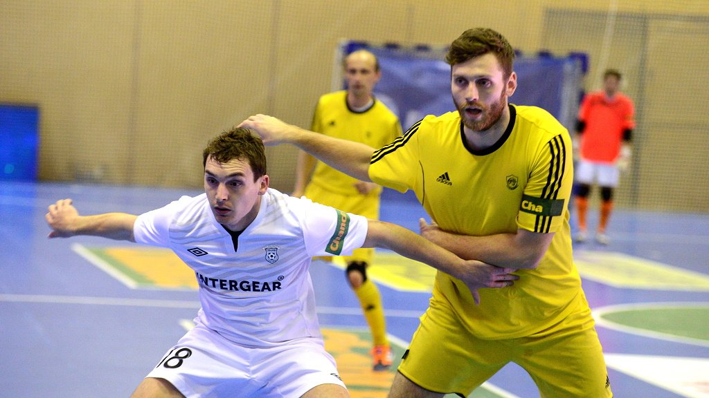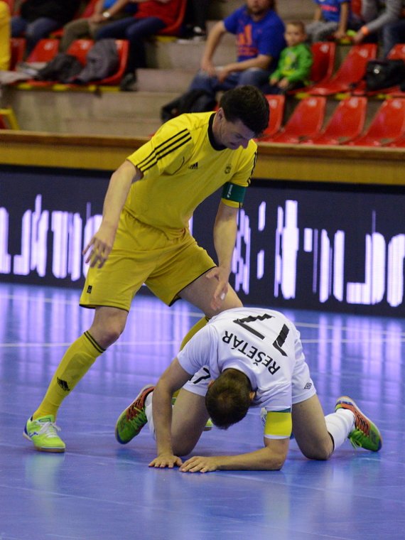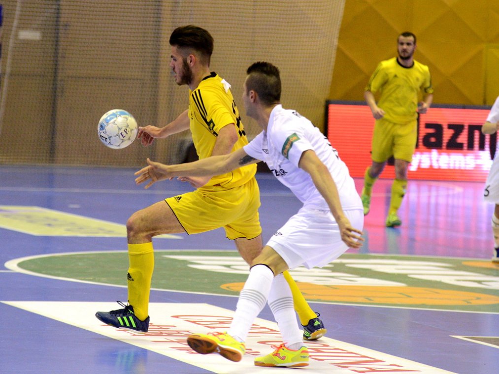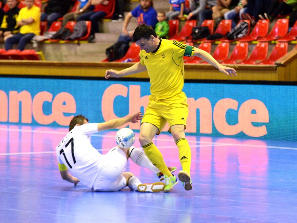 Od začátku se hrál vyrovnaný futsal. Nejzbach pozorně bránil a chodil do nebezpečných brejků. Hosté také těžili ze skvělých zákroků Libora Gerčáka. Šance se rodily na obou stranách, ale první gól vstřelil ve 13. minutě Koudelka, který si počíhal na zadní tyči. Nejzbach odpověděl v 15. minutě po rozehraném rohovém kopu na Vágnera a ten propálil vše před sebou – 1:1. Nadějný výsledek Nejzbach do přestávky neudržel, když v poslední minutě první půle napřáhl Záruba a jeho dělovka skončila za zády Gerčáka – 2:1.